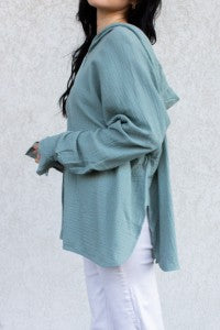 Hooded Long Sleeve Gauze Top in Pistachio