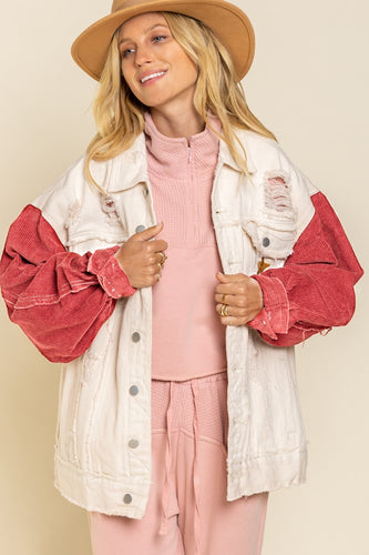 Oatmeal / Tomato Distressed Denim and Corduroy Jacket