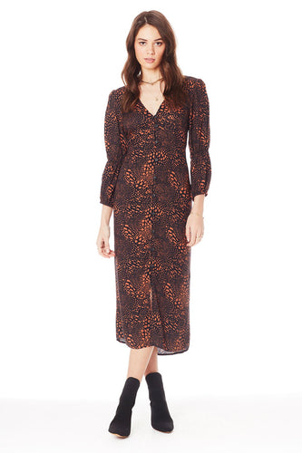 SALE - 3/4 Sleeve Button Front Midi Cinnamon
