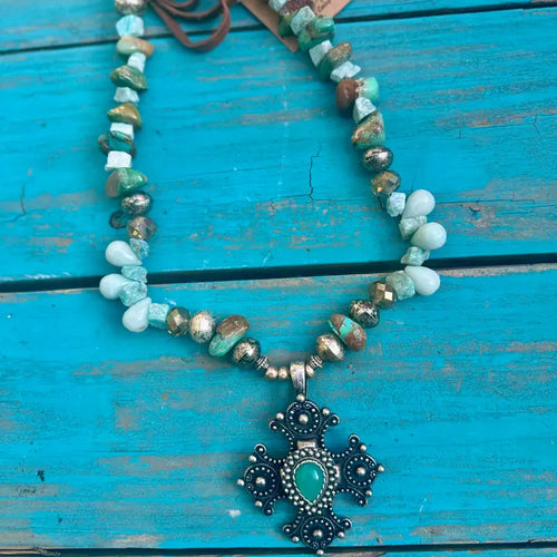 Turquoise Moonstone Cross Necklace