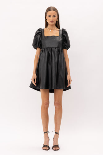 Vegan Leather Baby Doll Dress