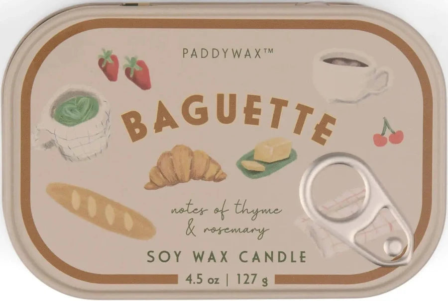 4.5 oz. Two-Wick Tin Candles | With a faux pull-tab for added character inspired by sardine tins, these tin candles with hand-illustrated artwork offer a cozy glow with its two wicks, and a comforting scent.